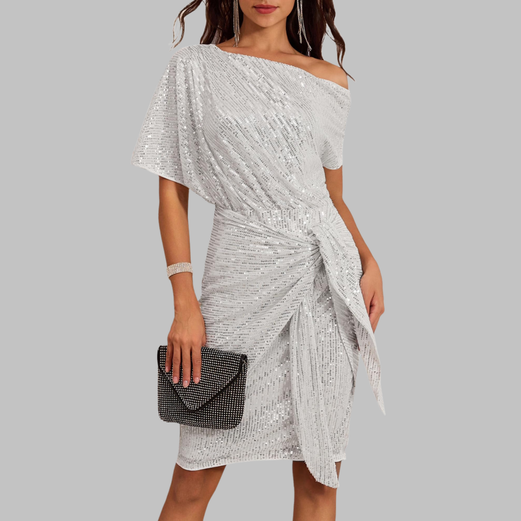Step into the spotlight with the FAYA™ Elegant Short Sleeve Asymmetric Shoulder Bodycon Dress. Perfect for evenings out, this chic piece combines a lustrous sheen with a modern, figure-enhancing silhouette. Its asymmetric shoulder design adds a contemporary edge, allowing you to express your unique style while radiating confidence and sophistication.
