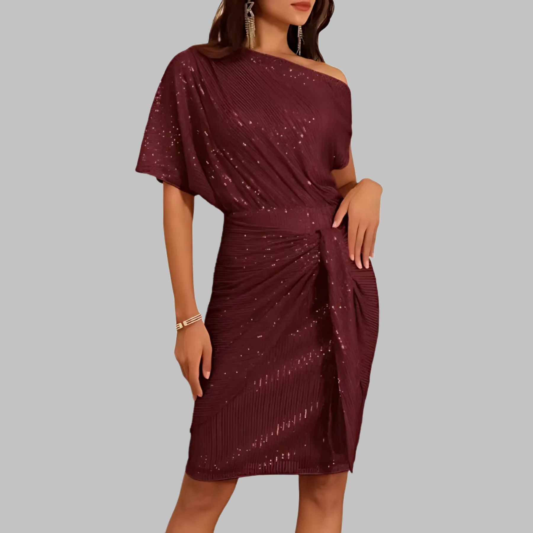 • Stunning design – The asymmetric shoulder and pleated details create a captivating look that stands out in any crowd.